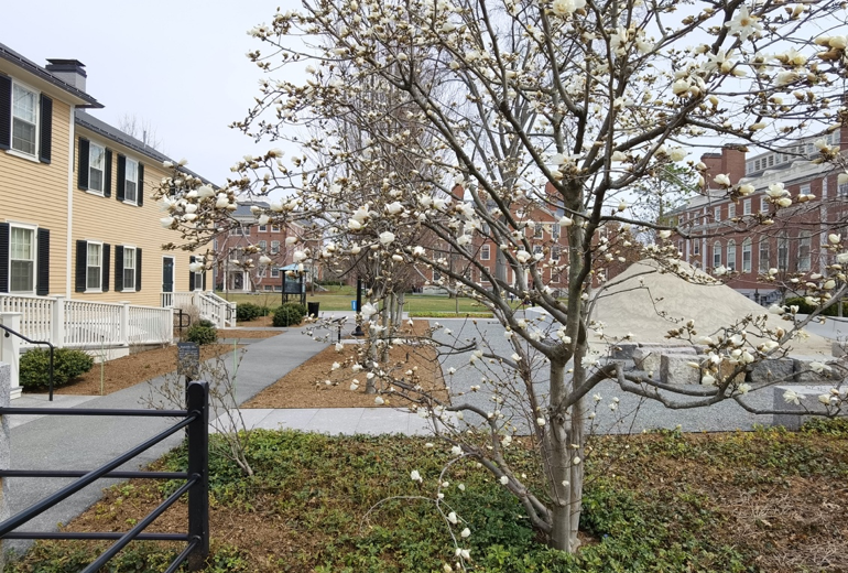 (2020春,空旷的哈佛雷德克利夫学院,玉兰初绽,空无一人。)