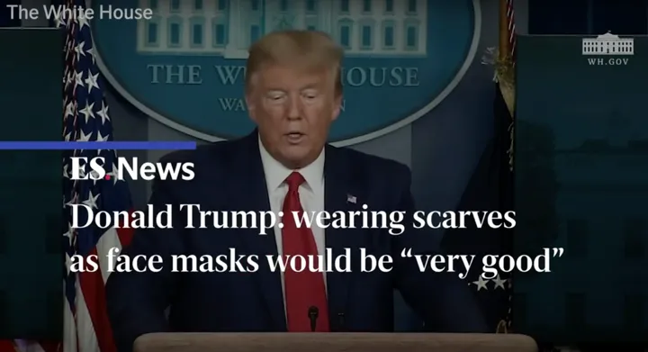 (白宫疫情通报,特朗普推荐民众以围巾代替口罩。)