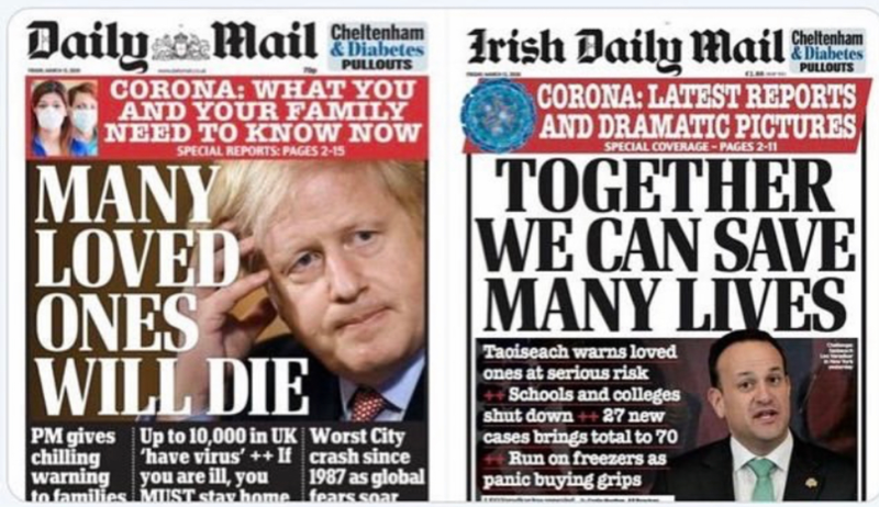 《每日邮报》:《许多人要痛失所爱》(左)《爱尔兰每日邮报》:《携手,我们就能拯救更多生命》(右)