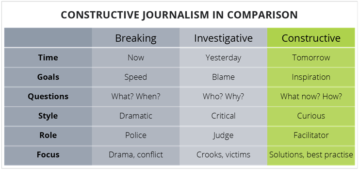 建构性新闻与突发性新闻、调查性新闻比较示意图(来源:https://constructiveinstitute.org/Constructive-Journalism/Constructive-Journalism)