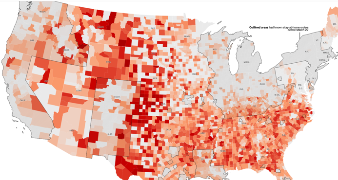[4] Glanz, J., Carey, B., Holder, J., Watkins, D., Valentino-DeVries, J., Rojas, R., & Leather, L. (2020, April 2). Where America Didn’t Stay Home Even as the Virus Spread. The New York Times. Retrieved from https://www.nytimes.com/interactive/2020/04/02/us/coronavirus-social-distancing.html