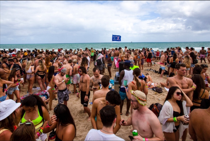 (疫情爆发期间,佛罗里达海滩上狂欢的年轻人享受春假以及停课之乐,无人意识到人群中无症状感染者的存在。)