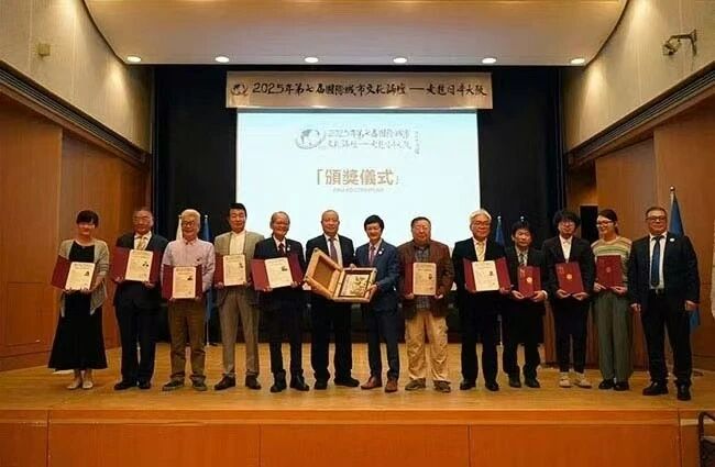 除主旨演讲外,他们还积极参与论坛圆桌交流,与来自中国社会科学院、大阪公立大学、NHK等机构的专家学者,围绕数字经济赋能城市发展、文化传承与城市创新融合等议题展开深入对话,进一步推动国际学界在城市文化建设与可持续发展领域的思想碰撞。期间,他们获颁“城市文化贡献奖”,以表彰其在促进中日城市文化交流、推动人类命运共同体理念在区域实践中所作出的卓越贡献。