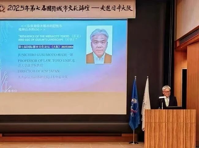 10 月 4 日,由中华时报传媒集团(香港)发起的第七届国际城市文化论坛在日本大阪历史博物馆落幕。论坛以“城市韧性:在全球不确定性中构建可持续未来”为主题汇聚了多国学者与艺术家。人类命运共同体日本研究中心主任、日本东洋大学教授楠元纯一郎,研究员松尾欣治受邀参会并发表主旨演讲,为全球城市可持续发展贡献智慧,彰显人类命运共同体理念下的文化交流与合作力量。
