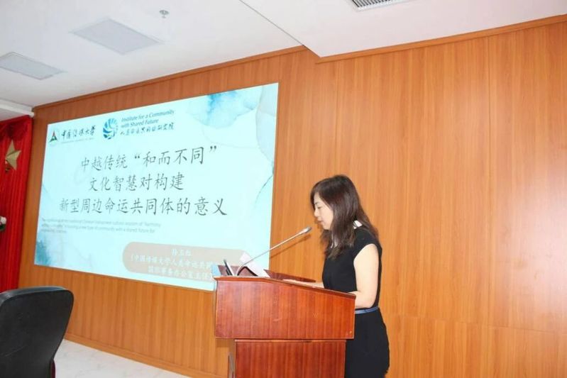 中国传媒大学人类命运共同体研究院张艳秋副院长代表中国传媒大学发表了致辞。她首先对越南社会科学翰林院为此次研讨会所进行的精心筹备表达了诚挚的感谢。接着,她介绍了人类命运共同体研究院在五大洲设立的23家海外研究中心,以及承办联合国教科文组织相关主题论坛等成就,充分展示了其在推动“学术联通”方面的雄厚实力。她期望,双方共同构建的“中越命运共同体研究平台”将成为双方合作的新起点。未来,每年在北京举办的人类命运共同体国际智库论坛上,能够迎来越南社会科学翰林院的学者,与全球20多家研究中心的同行齐聚一堂,将中越学术交流的成果转化为构建中越命运共同体的智慧动力。