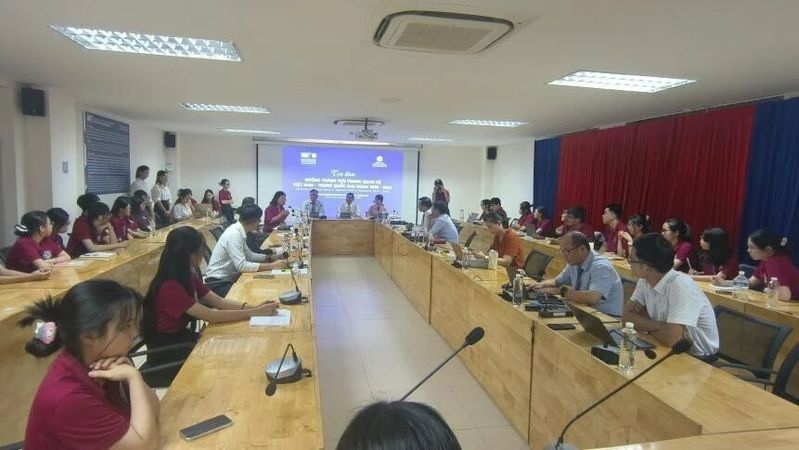 研讨会上,张艳秋副院长首先介绍中国传媒大学及人类命运共同体研究院的发展概况,随后发表题为 “以人文交流筑牢中越关系之基” 的主旨发言,围绕中越命运共同体建设路径、深化双方面对面人文交流的具体方向展开深入阐述;张志华教授介绍新闻学院学科特色,并以“全球南方视角下的中越南南传播”为主题,分享对中越开展南南传播的思考与见解。胡志明师范大学阮忠水博士则系统梳理近15年来中越两国在政治、经济领域的互动历程与合作成果。专家们的发言引发在场师生强烈共鸣,大家围绕议题积极提问、深入交流。